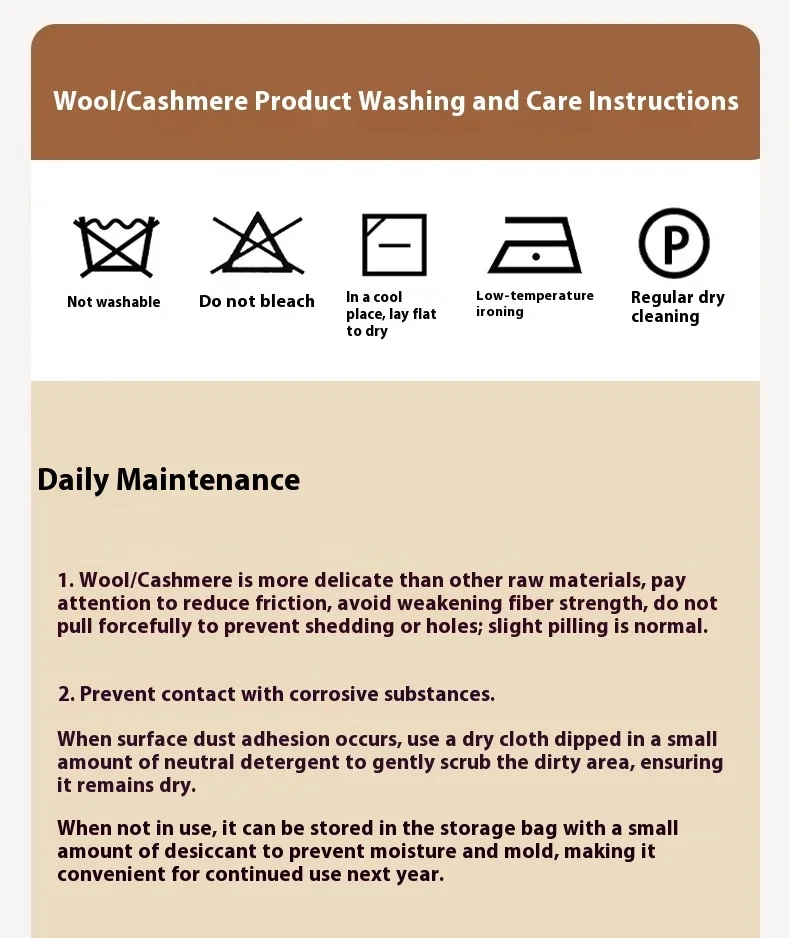 1. Please pay attention to washing at low temperature, do not bleach, and leave it for a long time